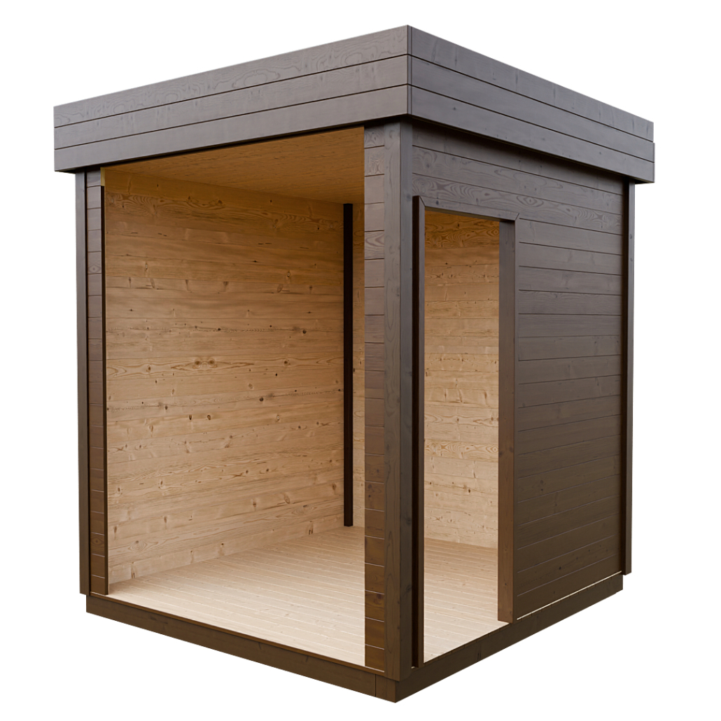 Prémiová zahradní sauna MODERN KUBE PROFI – navržená přesně podle vás! Už v základním rozměru 2,5×2,2 m nabízí dokonalý komfort pro dvě osoby ve dvou výškových úrovních. Zvolte odolný severský smrk s kvalitní ekologickou lazurou, nebo téměř bezúdržbový modřín se životností přes 40 let. Každá sauna je originál a díky špičkové izolaci se rychle nahřeje a skvěle drží teplo.