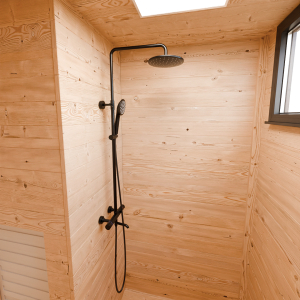 Vnitřní vybavení je tvořeno z kvalitní osiky, olše, modřínu nebo Thermowoodu®, což jsou dřeviny ideální do vysokých teplot. Sedačky a opěrky jsou ergonomicky navrženy a snadno odnímatelné – usnadňují tak údržbu a udržení hygieny. Sauna je plně zateplena, včetně podlahy a stěn, a v základní výbavě najdete rovněž elektroinstalaci testovanou do 200 °C, elektro skříň, skleněné dveře a okna, RGB podsvícení lavic s ovládáním intenzity, teploměr i základní ovladač sauny.